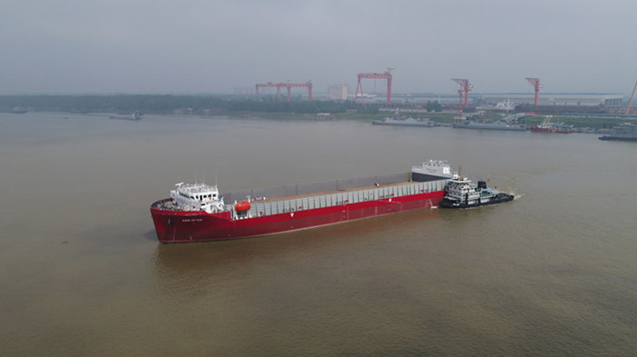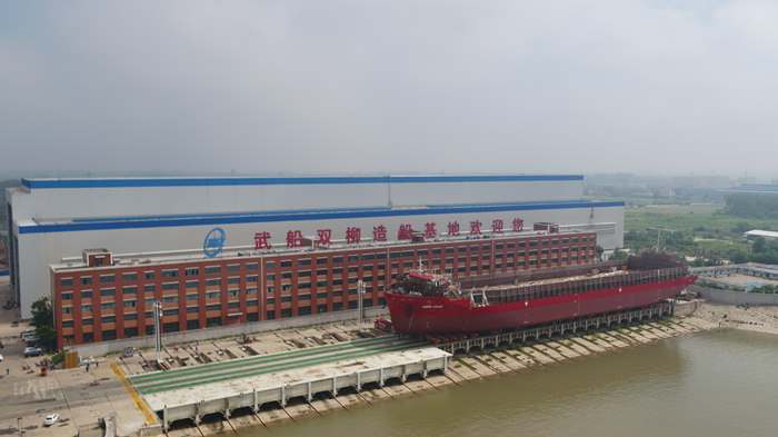 6月1日上午9時28分,由武船集團(tuán)海工院設(shè)計、雙柳武船承建的13000DWT甲板運(yùn)輸船2號船駛離雙柳武船基地2號系泊試驗碼頭,前往南通瑞泰基地進(jìn)行最后的交付工作。當(dāng)天下午3:00整,13000DWT姊妹船3號船沿著雙柳基地滑道,順利下水。