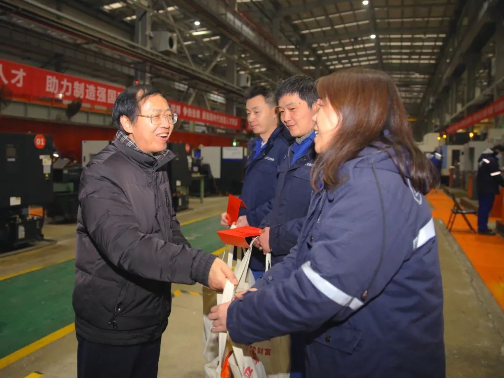 秦少相主席指出,各級(jí)工會(huì)組織要深入學(xué)習(xí)習(xí)近平關(guān)于工人階級(jí)和工會(huì)工作論述摘編內(nèi)容,聚焦中國(guó)工會(huì)十八大部署,堅(jiān)持以職工為中心的工作導(dǎo)向,更直接、更深入、更貼近廣大職工群眾開(kāi)展送溫暖慰問(wèn)活動(dòng)。春節(jié)將至,代表中國(guó)國(guó)防郵電工會(huì)對(duì)武昌造船廣大干部職工致以節(jié)日的問(wèn)候。