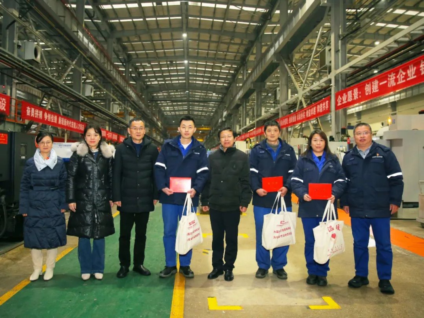 秦少相主席一行在船臺(tái)總裝區(qū)、數(shù)控加工區(qū)等生產(chǎn)區(qū)域,親切慰問(wèn)了公司一線(xiàn)職工代表,送上慰問(wèn)金和慰問(wèn)品,詢(xún)問(wèn)了大家的工作及生活狀況,對(duì)大家立足崗位、拼搏奮斗,為國(guó)防建設(shè)作出的重要貢獻(xiàn)表示感謝,期望大家牢記初心使命,奮勇?tīng)?zhēng)先,為全面推進(jìn)中華民族偉大復(fù)興作出新的更大貢獻(xiàn)。