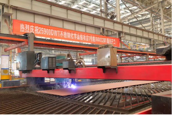 4月23日10點38分,由中國船舶集團武昌造船為興通海運股份有限公司下屬子公司興通海獅航運有限公司建造的25900載重噸不銹鋼化學品船1號船正式開工。興通海運股份有限公司副總裁陳其德一行及現場監造團隊,美國船級社,武昌造船黨委委員、副總經理田軍及公司各部門相關負責人參加開工儀式。