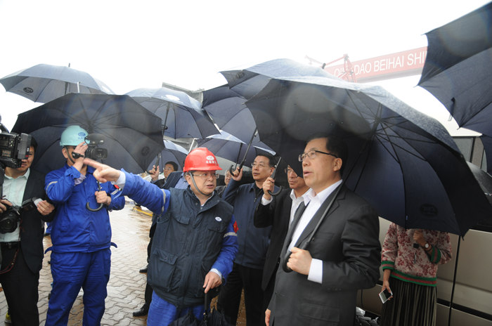 張江汀一行在北船重工黨委書記王國海、副總經理谷克超、宋建光陪同下,先后來到50萬噸造船塢和青島武船,實地察看了正在建造的新型40萬噸超大型礦砂船和即將交付的我國首座“深海漁場”?C?C深藍1號全潛式養殖漁場,仔細了解了超大型船舶生產制造有關情況。他強調,要深入貫徹落實習近平總書記關于經略海洋的重要指示精神,按照全省海洋強省建設工作會議的部署要求,加快構建現代海洋產業體系,培育壯大海洋新動能,努力在海洋經濟發展上率先走在前列。